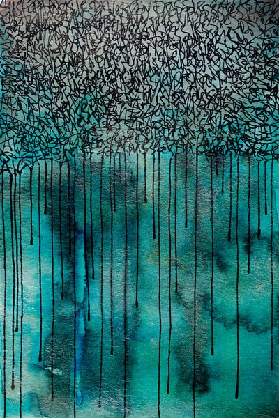 A hand-painted watercolour in which vulnerability and strength meet. Soft transitions from deep blue to bright turquoise flow organically into each other, as if water and emotion merge on the paper. The colours exude tranquillity, but at the same time carry an underlying tension.