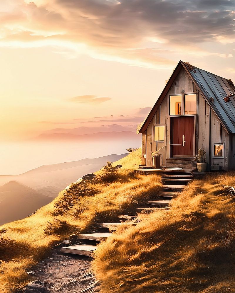 Buy this landscape artwork Hut with a view by fernlichtsicht on canvas, ArtFrame, poster and wallpaper, printed on demand in high quality.