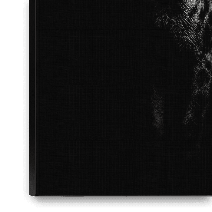 A majestic animal with a mysterious aura stands out in impressive darkness, its glowing eyes radiating a fascinating depth. The soft contours and atmospheric interplay of light and shadow lend this work of art a touch of the wild. Perfect for a modern living room, it becomes a conversation piece among friends.