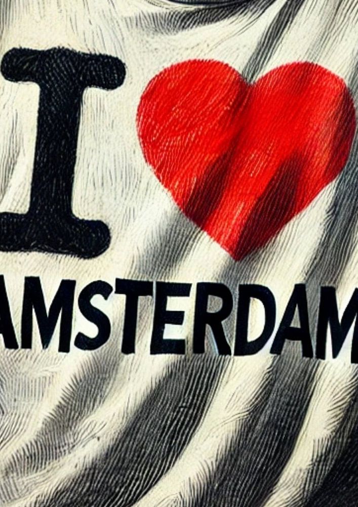 Unique digital artwork: a t-shirt with a beautiful I Love Amsterdam print in the style of Rembrandt. This detailed image captures the essence of the Golden Age with a modern twist, perfect for art and Amsterdam lovers.