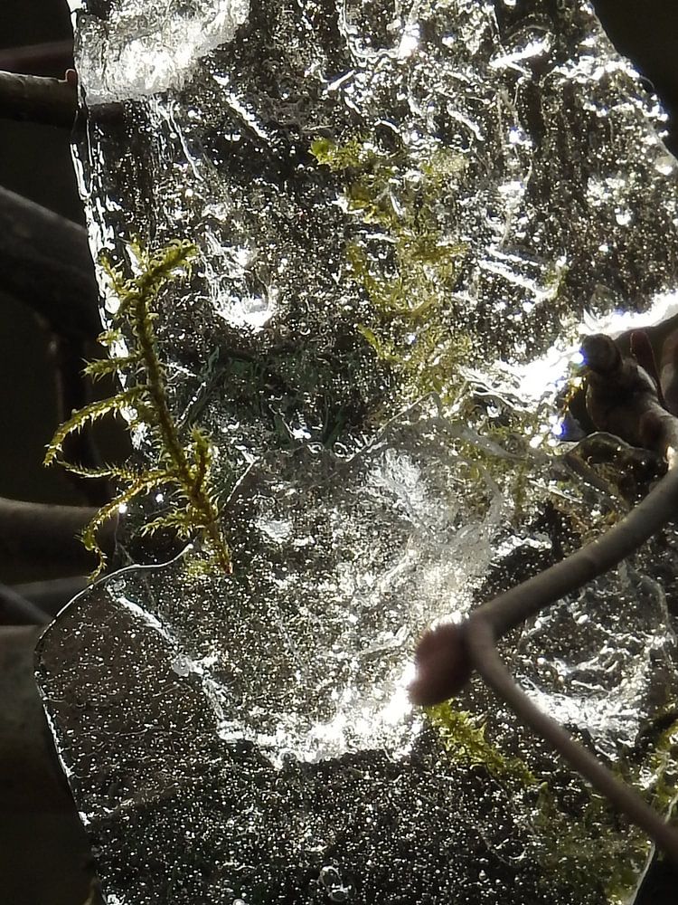 Bevroren ijs in de boom, een waar kunststuk.