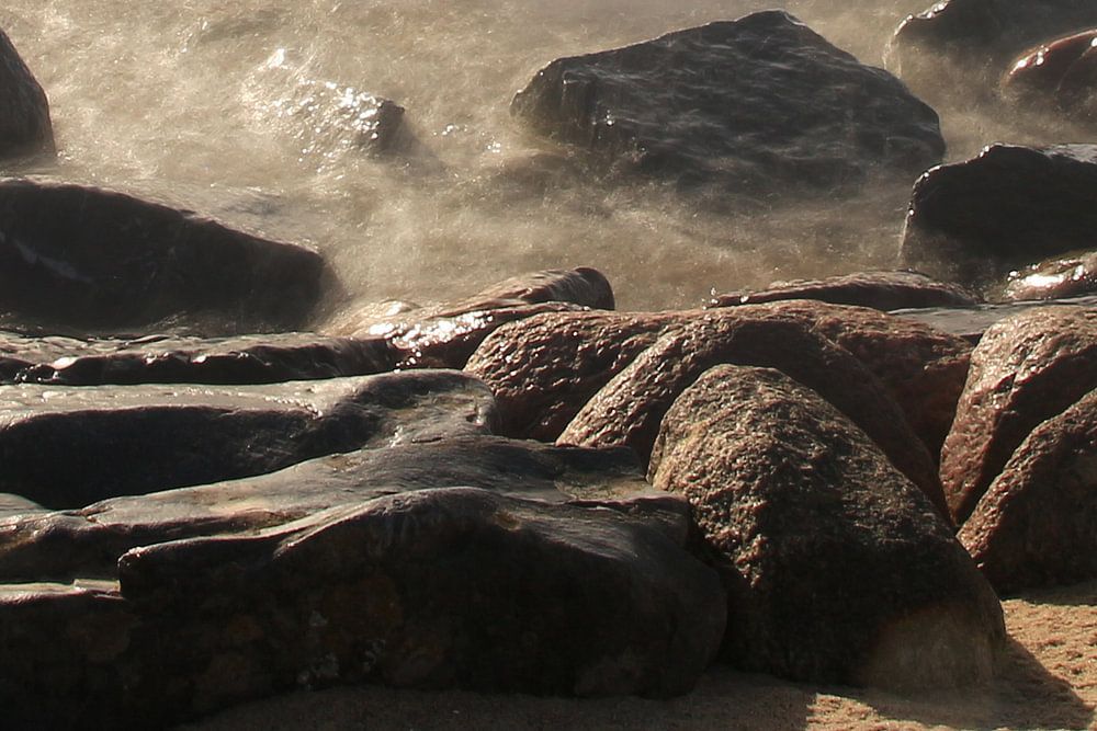 Het waaide best wel hard, fotografie Sijbrandij heeft deze foto gemaakt met een grijsfilter, zo krijg je de sluier over de stenen. De foto heb ik gemaakt bij het IJsselmeer nabij Stavoren in Friesland.