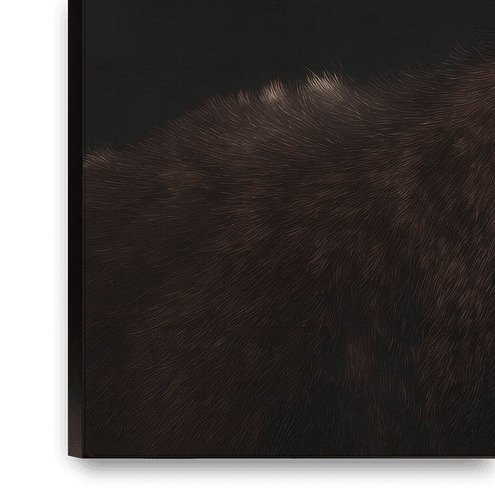 This work shows the ibex in an intimate and powerful portrait, in which all attention is focused on its head and impressive horns. Against a dark, almost velvety background, the animal stands out beautifully. Warm brown and copper colours dominate the image, giving the fur a deep, rich look. The subtle light falling over the head and…
