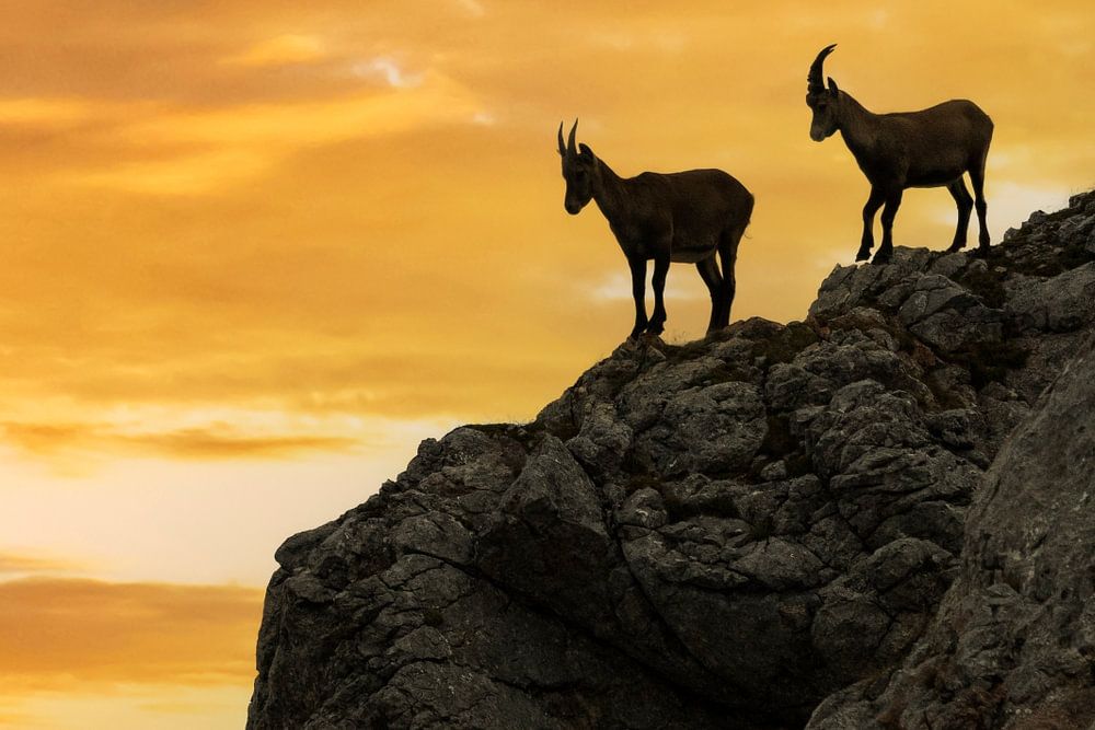 Buy the photo Ibexes at sunrise by Dieter Meyrl on canvas, ArtFrame, poster and wallpaper, printed on demand in high quality.