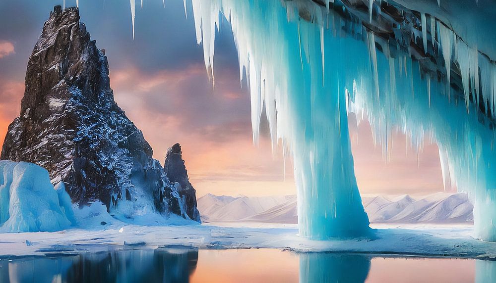 Buy this landscape artwork Ice cave with mountain and snow by Mustafa Kurnaz on canvas, ArtFrame, poster and wallpaper, printed on demand in high quality.