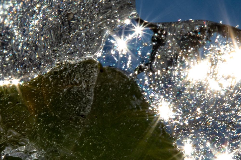 Transparent stool of ice on a leaf, with backlighting and starlight