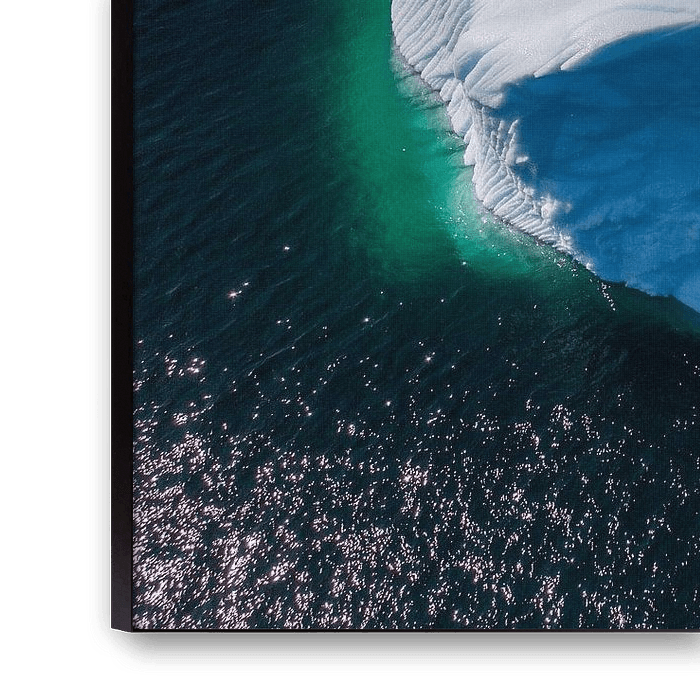 An Iceberg off the coast of Newfoundland. These icebergs contain ice of more than 10,000-year-old snow and water. They break off on the Greenland coast in spring and summer and then take a year to reach the Newfoundland coast. Because only 10 per cent is above the water, it is easy to see from above what ice is still underwater.