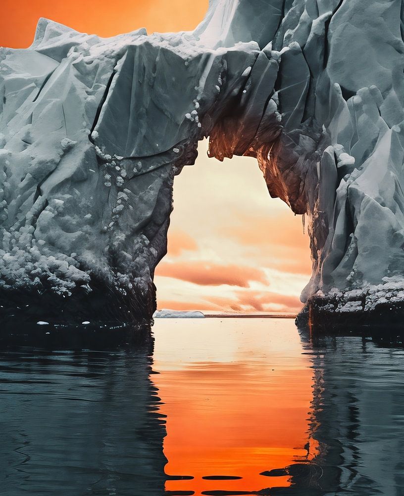 Buy this landscape artwork Iceberg at sunrise by fernlichtsicht on canvas, ArtFrame, poster and wallpaper, printed on demand in high quality.