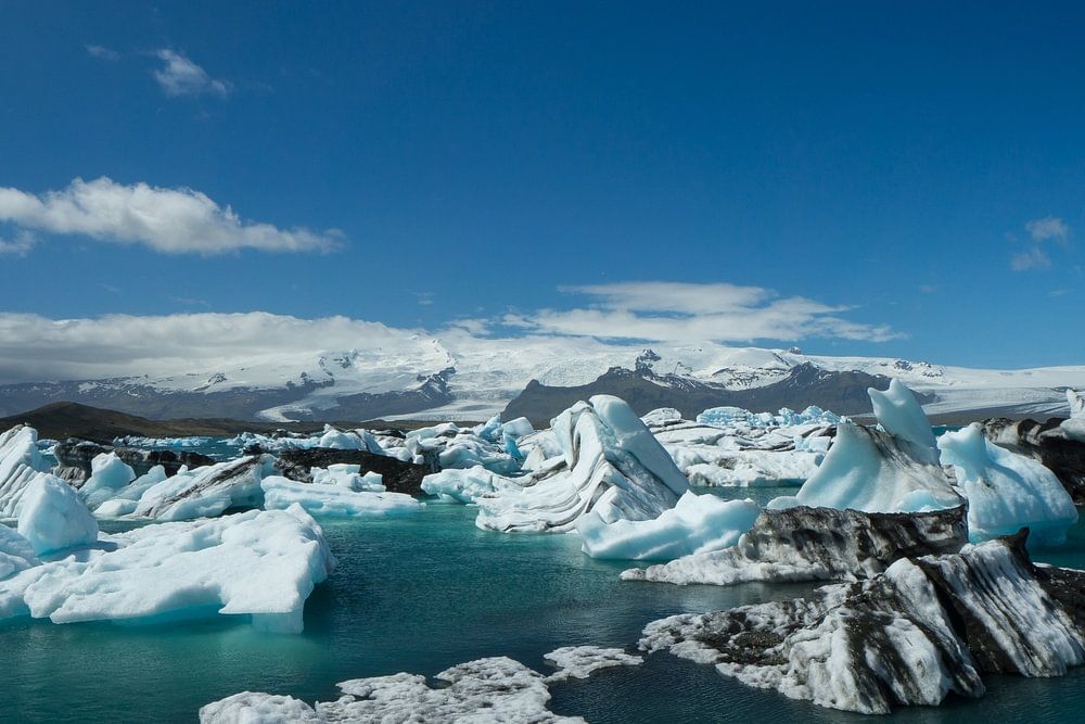 About "Iceland - Aerial photograph of many huge ice floes and blue water"