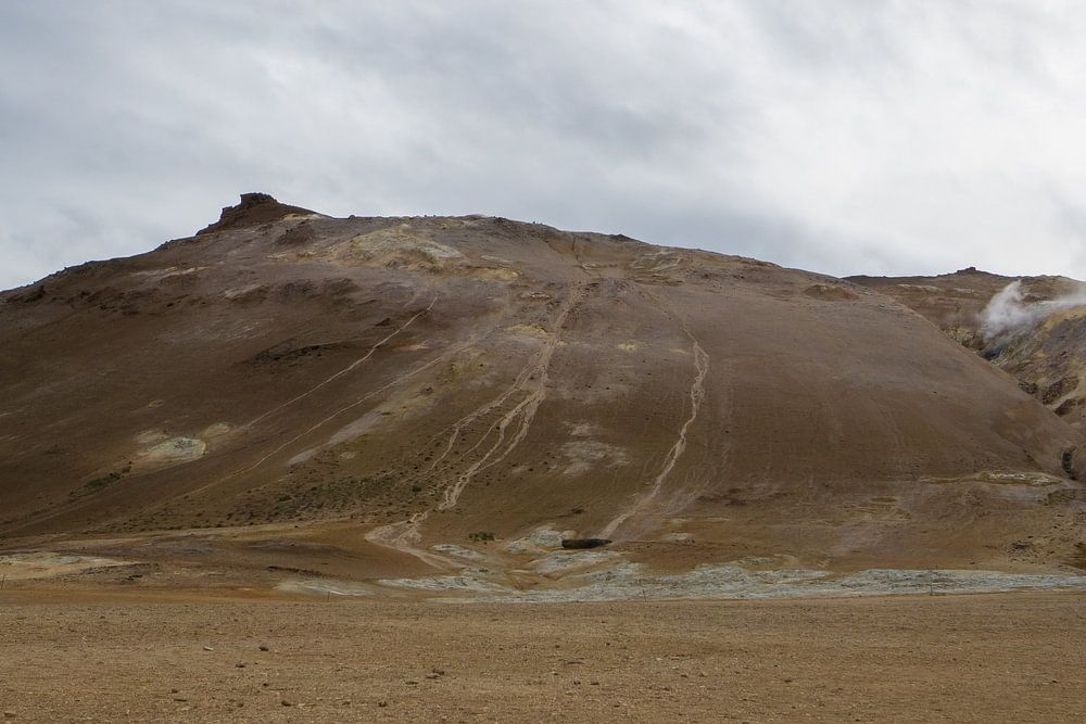 About "Iceland - Brown volcanic mountains and ground and fumaroles at geothermal area hverir"