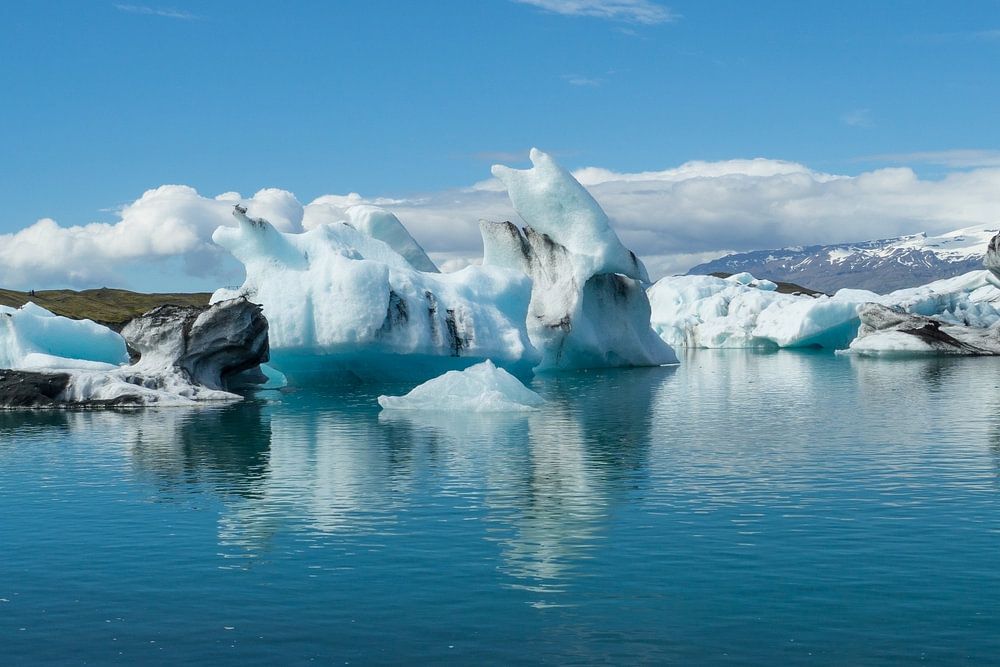 Iceland - Clear water of glacier lagoon joekulsarlon full of shiny ice floes
