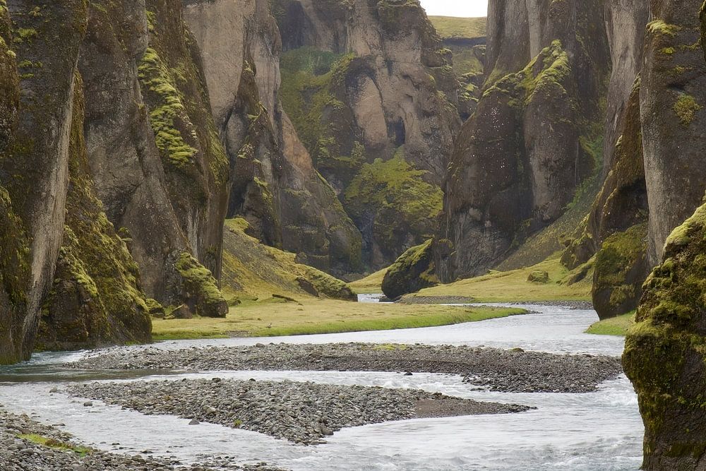 Geologists have discovered that this gorge was formed in a special way. The layer of rocks consists of soft rock, but also of hard magma. After the last ice age about 9,000 years ago, it got warmer in Iceland. This created a large lake at the beginning of the gorge. The water that fell over the edge ran into the gorge. And so scoured away a lot of soft sand. But the walls of the lake broke, causing a large stream of water to thunder through the gorge. And so scoured out the gorge. If you walk here you can see how much violence that must have caused.