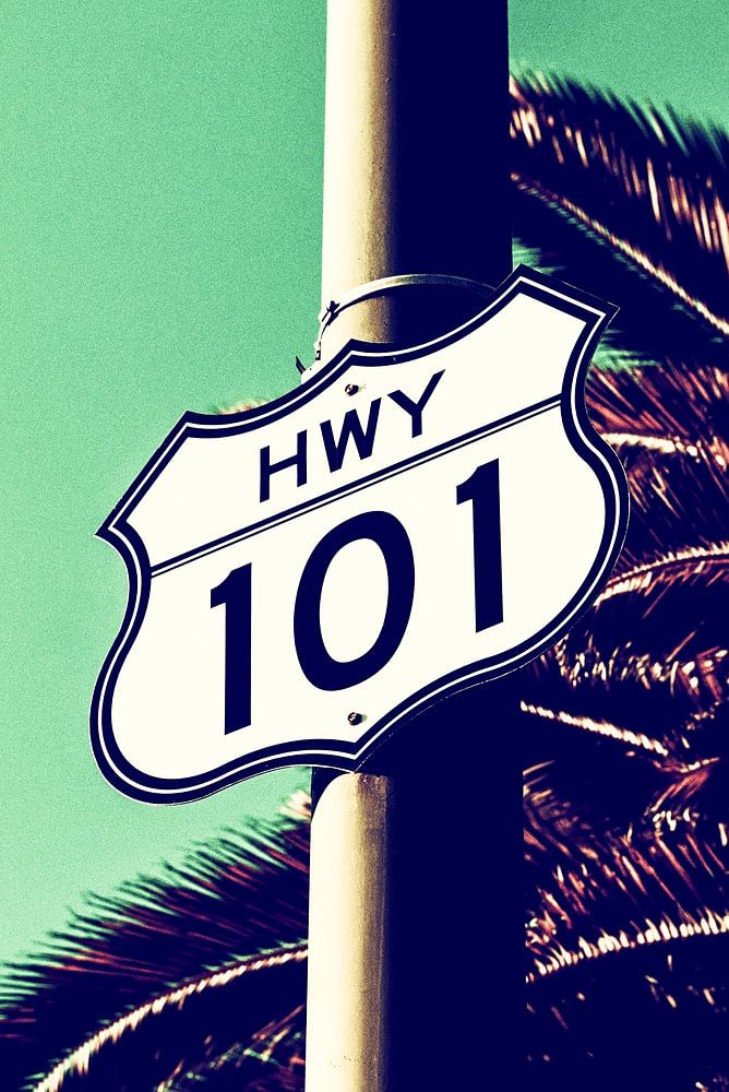 Highway 101 runs through the states of California up to Washington on the west coast of the USA. This sign was captured in the city of Encinitas, California.