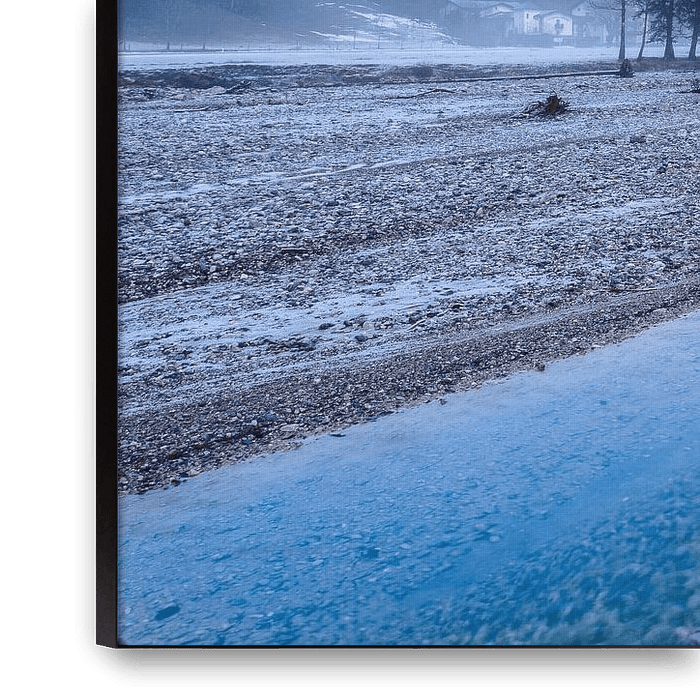 Buy this landscape artwork Icy river bed by Denis Feiner on canvas, ArtFrame, poster and wallpaper, printed on demand in high quality.