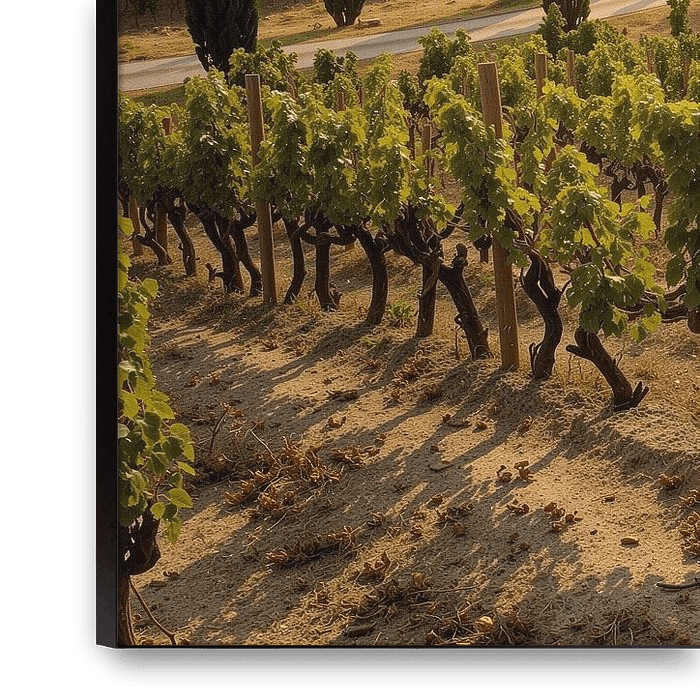 Buy this landscape artwork Idyllic Vineyard Landscape at Golden Hour by Markus Gann on canvas, ArtFrame, poster and wallpaper, printed on demand in high quality.