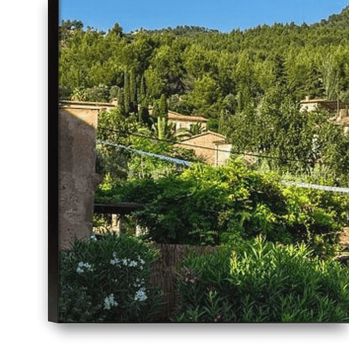 Buy this landscape artwork Idyllic mountain panorama landscape of Deia village by Alex Winter on canvas, ArtFrame, poster and wallpaper, printed on demand in high quality.