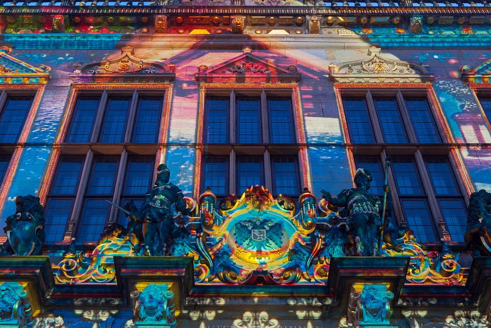 About "Illuminated Schütting on the Bremen market place, Bremen, Germany, Europe"