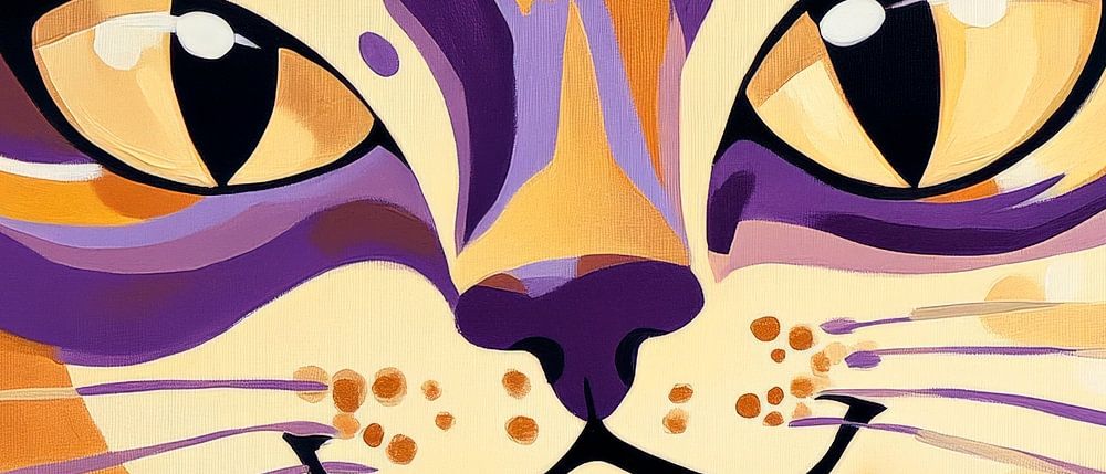 An artistic masterpiece that plays with vivid purple and gold colours and captures the fascinating gaze of a cat. The large, expressive eyes cast a spell over the viewer and add a playful elegance to any room. Perfect for the living room, where creativity and cosiness go hand in hand.