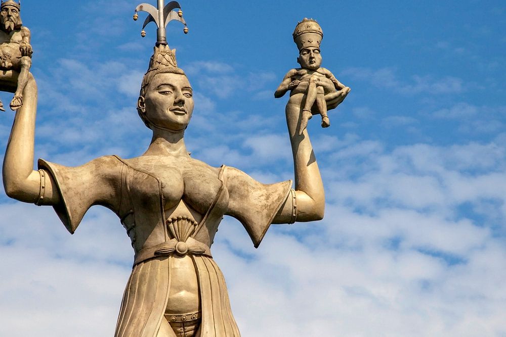 Sculpture Imperia, by sculptor Peter Lenk, at the harbour entrance of Constance on Lake Constance, Baden-Württemberg, Germany