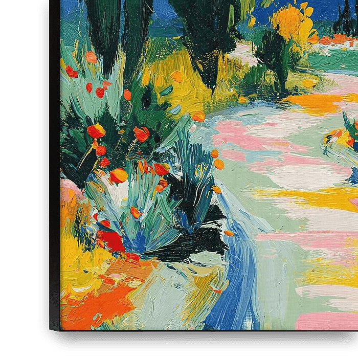 Buy this flower art Impressionist landscape at sunset by Niklas Maximilian on canvas, ArtFrame, poster and wallpaper, printed on demand in high quality.