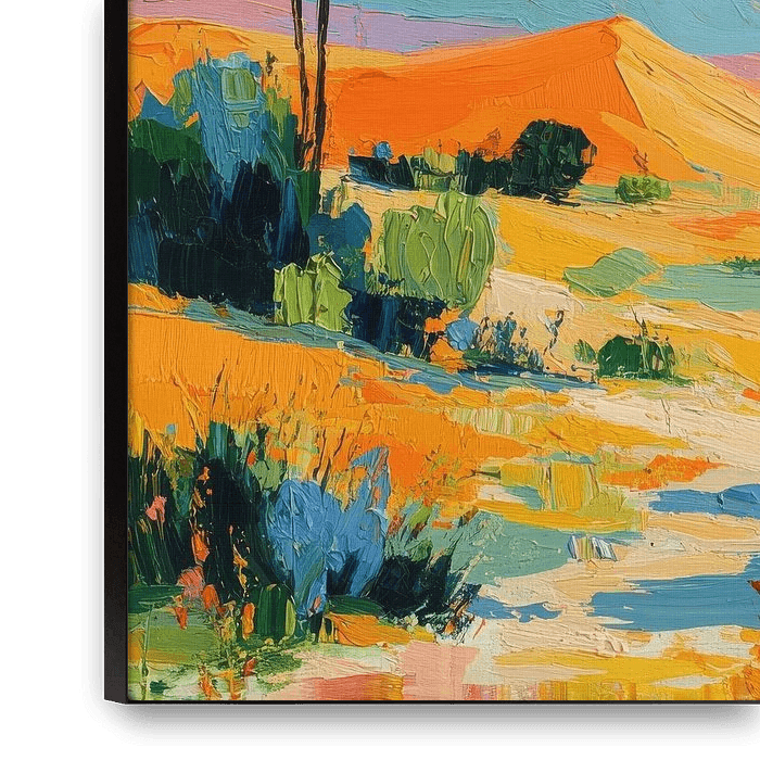 Buy this painting Impressionistic desert landscape by Niklas Maximilian as a reproduction on canvas, ArtFrame, poster and wallpaper, printed on demand in high quality.