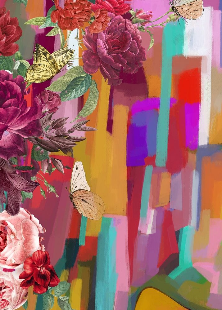 In this artwork, an abstract profile emerges as an interplay of bold colors, drawing viewers into the realm of abstract expressionism. Devoid of facial features, the profile still emanates a profound sense of emotion and introspection, encouraging contemplation of the human experience. Bursting forth from the profile are vibrant roses, exuding exuberance and vitality while symbolizing themes of beauty and growth.