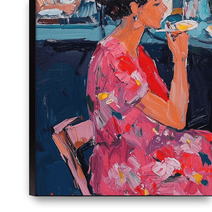 Your chosen art on canvas, stretched in an aluminum frame. Quick and easy to change for a fresh look and exactly as you want it.