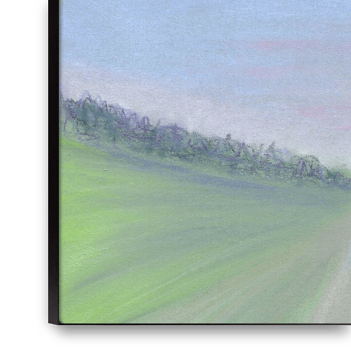 Whilst walking, there are moments when the landscape opens up. The lines in the field and the horizon draw your gaze forward, as if you are moving on of your own accord. This image captures that feeling. The landscape flows in swathes…