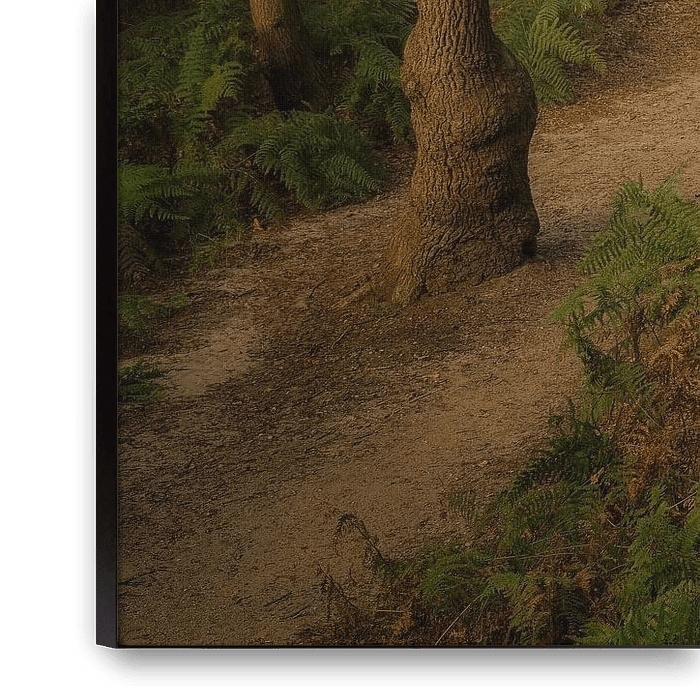 The ferns in this enchanted forest stretch lushly across the forest floor, making you feel like you are walking through a sea of green. The filtered light of the morning sun penetrates the leaves and casts soft rays on the tree trunks, giving them a beautiful, warm glow.