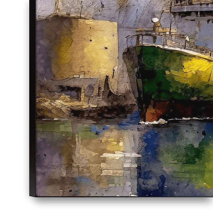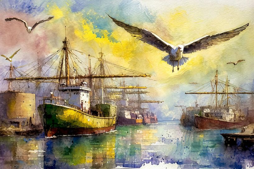 Buy this digital art artwork In the harbour by Ingrid van der Meer as a reproduction on canvas, ArtFrame, poster and wallpaper, printed on demand in high quality.