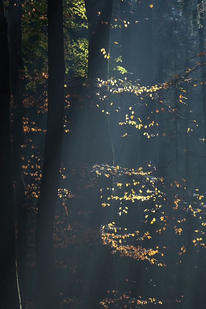 Suddenly, a ray of sunshine came through between the trees, placing the little tree right in the spotlight.