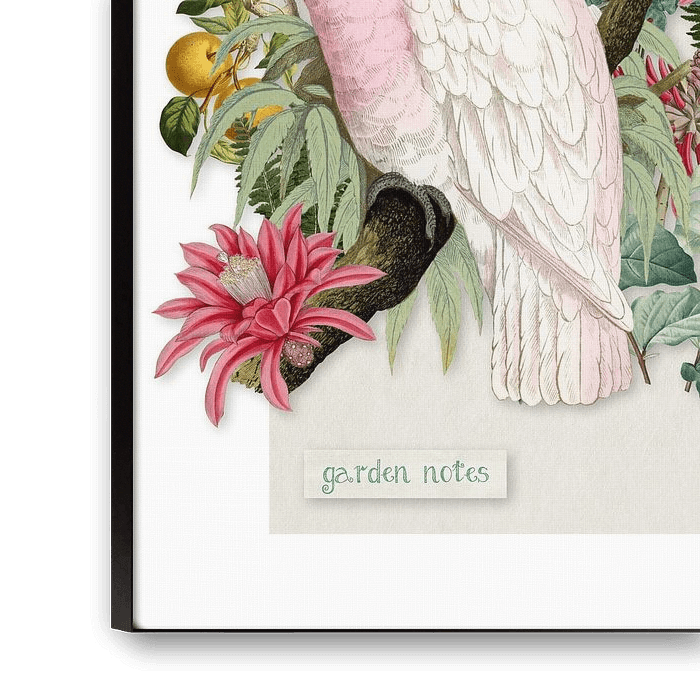 The beautiful illustration of the bird was created by Irish-born English artist Alexander Francis Lydon (1836 - 1917). I digitally removed the bird from its original background and added a pink one, along with sections of vintage illustrations of flowers, fruits and plants.