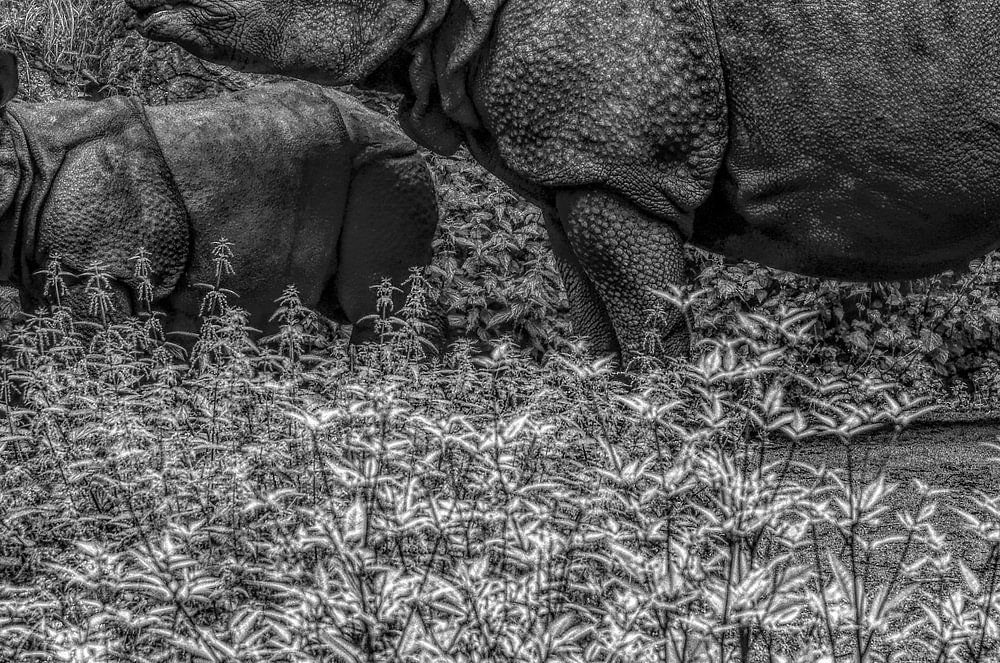 From a photo I took of an adult and a young Indian rhino, I made this silver-grey edit!