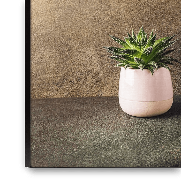 Your chosen art on canvas, stretched in an aluminum frame. Quick and easy to change for a fresh look and exactly as you want it.