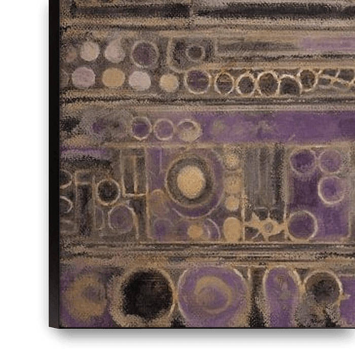 Industrial Labyrinth captures the essence of modern technology and futuristic designs in a complex network of lines and circles. The use of deep purple tones combined with gold accents gives the work a luxurious feel. Influences of art deco are evident in the clean geometric patterns and symmetrical design. This work appeals to lovers…