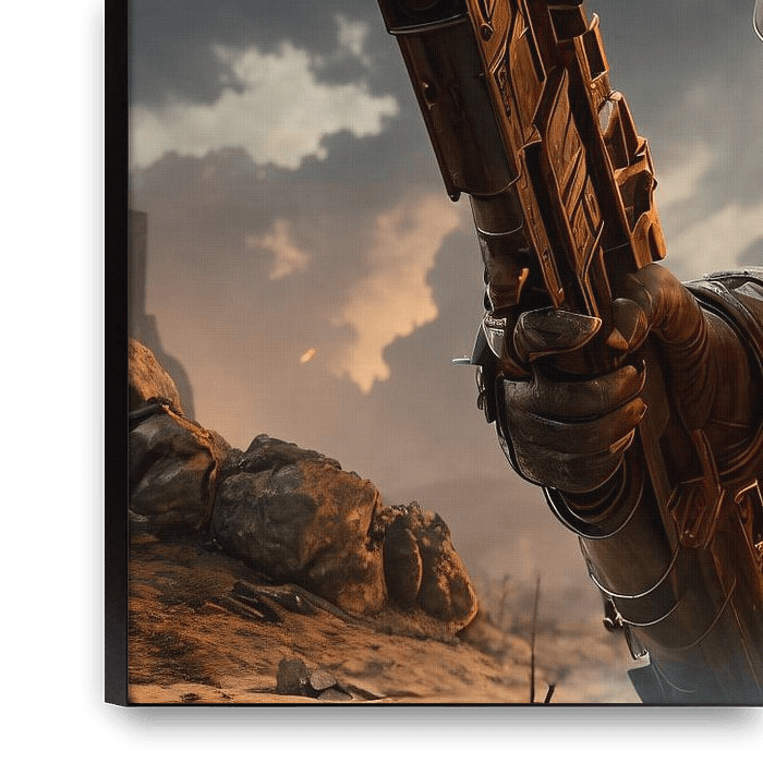 Digital art of a warrior inspired by the Halo game universe. Many details in the armour of this hero which partially bursts into flames at the shoulder.