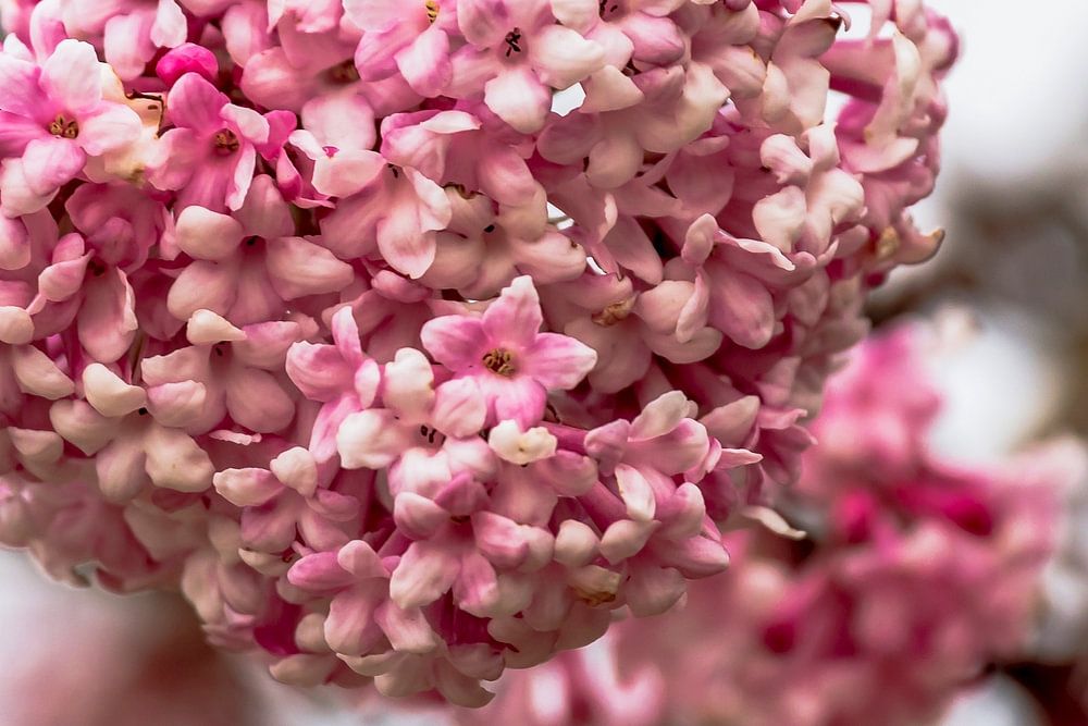 Inflorescence with open flowers of the winter snowball - Bodnant Viburnum
