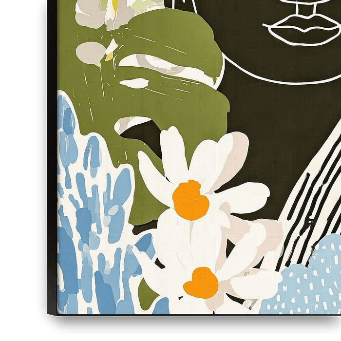 Dieses beruhigende Artwork vereint meditative Stille mit lebendiger Naturkraft und schafft einen Rückzugsort für die Sinne. Im Zentrum ruht ein Buddha-Gesicht mit geschlossenen Augen, reduziert auf klare Linien und eine dunkle, kraftvolle Fläche, die Sammlung und innere Einkehr ausstrahlt. Um diese stille Figur herum entfaltet sich eine…