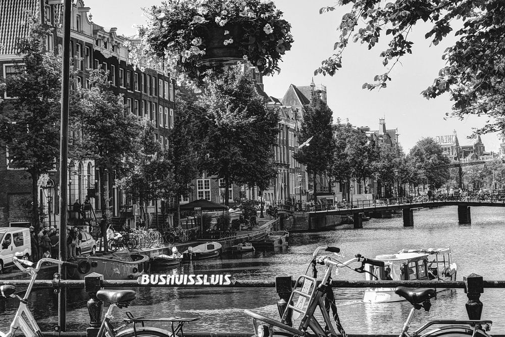Buy the photo Inner city of Amsterdam Netherlands Black and White by Hendrik-Jan Kornelis on canvas, ArtFrame, poster and wallpaper, printed on demand in high quality.