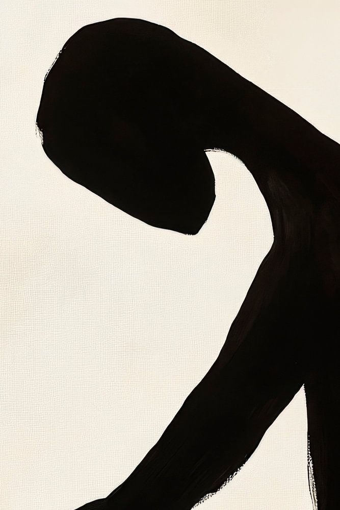 In the centre of the cool, almost empty surface, a melancholy silhouette lingers in formless grace. Her broken neck and gently bent limbs bear witness to inner turmoil. The interplay of light and shadow reinforces the atmosphere of loneliness, while the calm pose radiates a deep, inexplicable sadness.