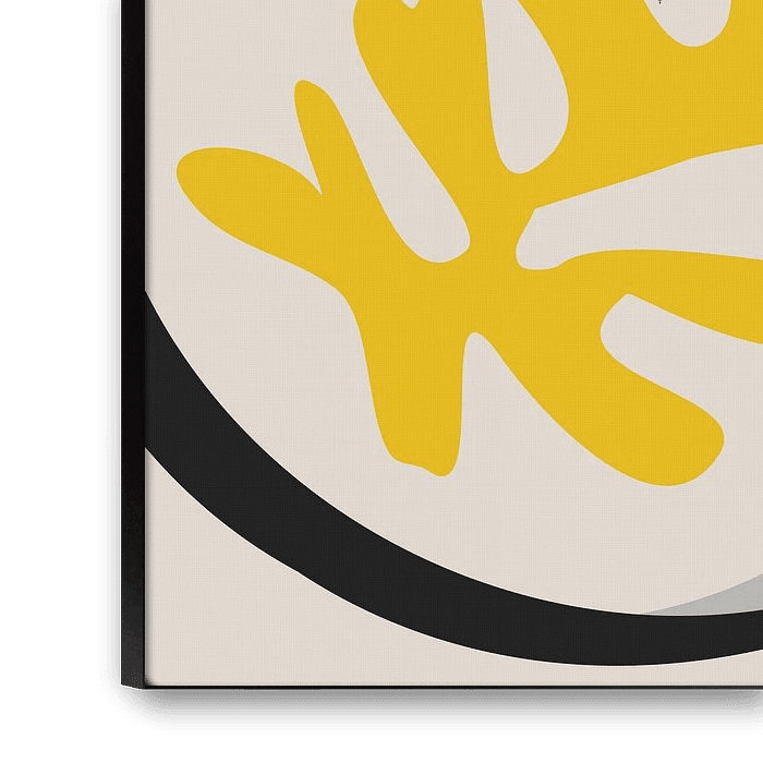 Inspired by Henri Matisse I may present you here a wonderful nature leaf painting in front of an abstract moon with mustard yellow leaf shape on cream beige background.