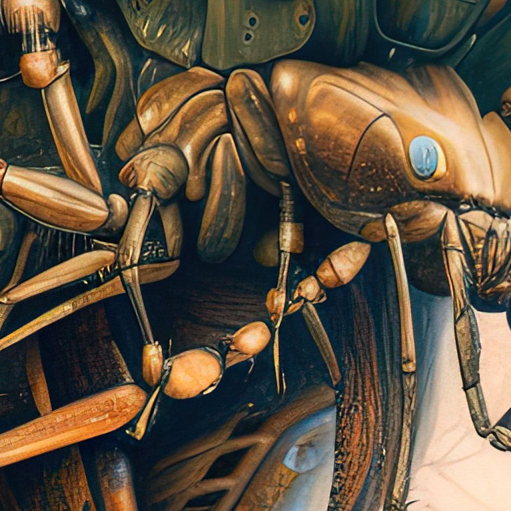 "Instinctive" is a digital artwork that transports the viewer into a surreal world where nature and technology merge. The centrepiece of the painting is a giant insect enthroned on a piece of wood and cybernetically modified. The finely detailed painting gives the insect an almost tangible presence, as if it could come to life at any moment. This artwork invites the viewer to reflect on the relationship between humans and nature and how technology influences our instincts. The insect represents the animal kingdom, which acts independently and instinctively, while the wood symbolises nature, which is often threatened by technology. The cybernetic modifications remind us of how much technology interferes in our lives and can influence our instincts. "Instinctive" challenges us to discover and protect our inner instinct to live in harmony with nature. The masterful painting and profound message make this artwork an essential part of any art collection looking to glimpse the future."