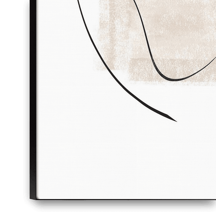 Minimal abstract graphic art. Black line shapes against a beige, neutral, sand colored brush stroke background.