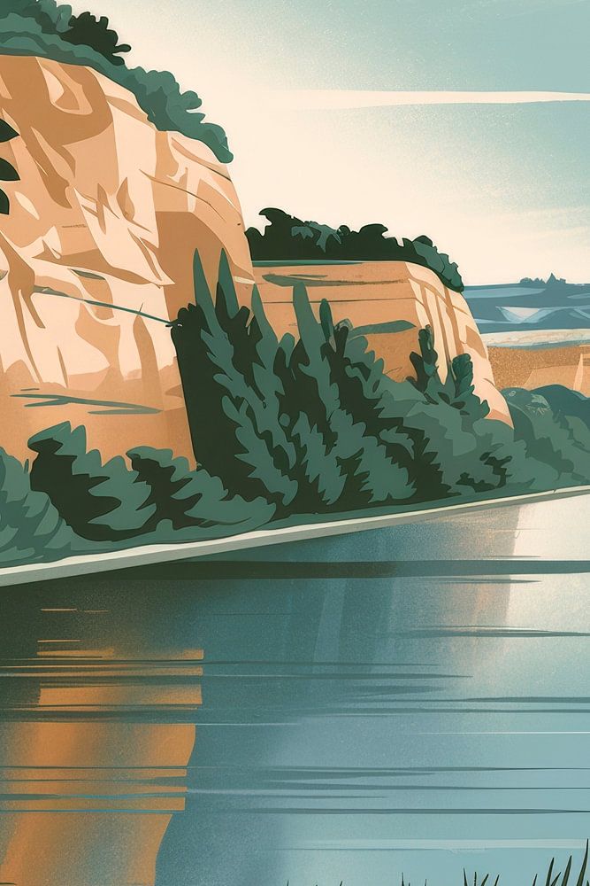 A gentle river meanders through lush landscapes, framed by majestic cliffs and gentle trees. The harmonious colours lend the room a calming atmosphere. Perfect for the living room to slow down and bring the beauty of nature into your own home. A timeless eye-catcher that invites you to dream.