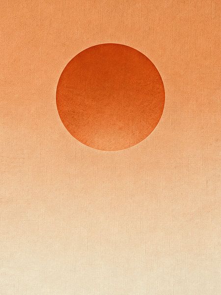 Bring a sense of Zen and modern serenity to your home with this exquisite JAPANDI-inspired abstract art print. The composition features a bold, centered terracotta sun suspended over a delicate gradient of warm beige and sandy cream.