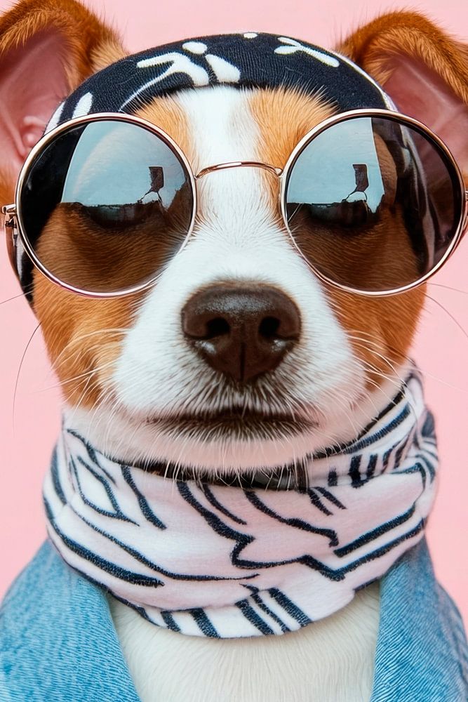 With his stylish sunglasses look and charming neckerchief, this Jack Russell Terrier radiates coolness. The denim jacket gives him a hip, vibrant flair, while the lively ears and tense look emphasise his playful, energetic nature. A true fashion statement in the canine universe!