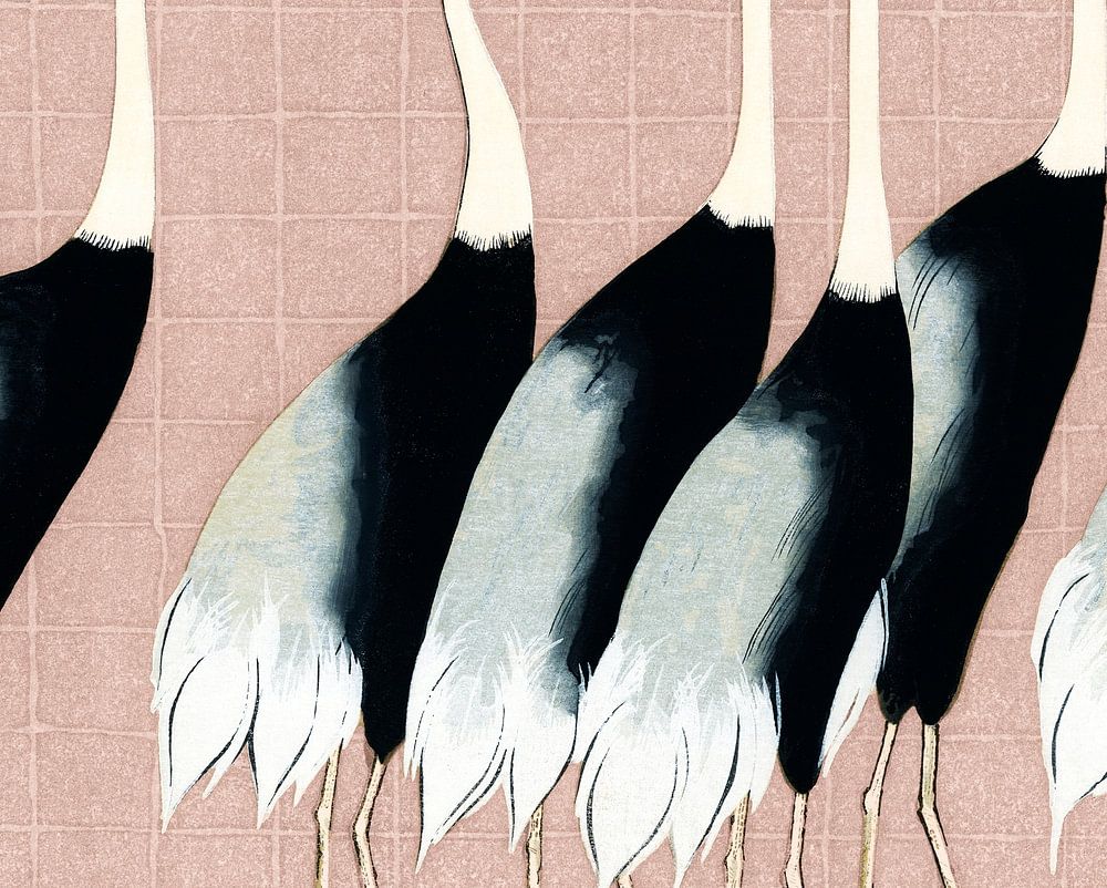 About "Japan cranes on pastel pink"
