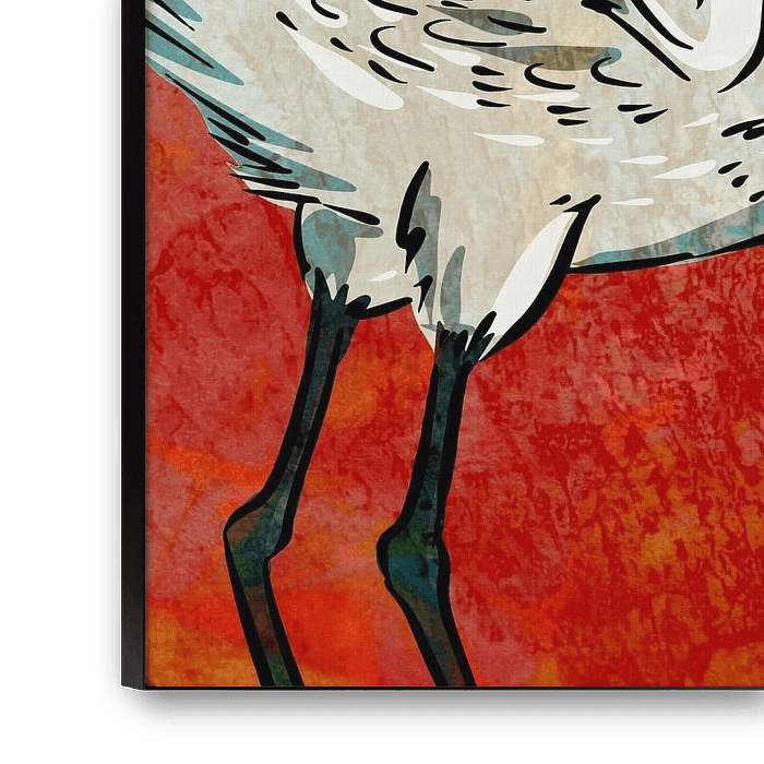 Japanese cranes at sunset in a calming landscape painting on a pleasant monochrome background with a deep vintage texture.