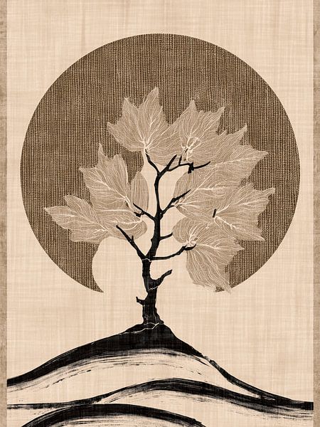 About ‘Japandi Art: Tree with Moon and Abstract Hills’ by Studio Pieternel