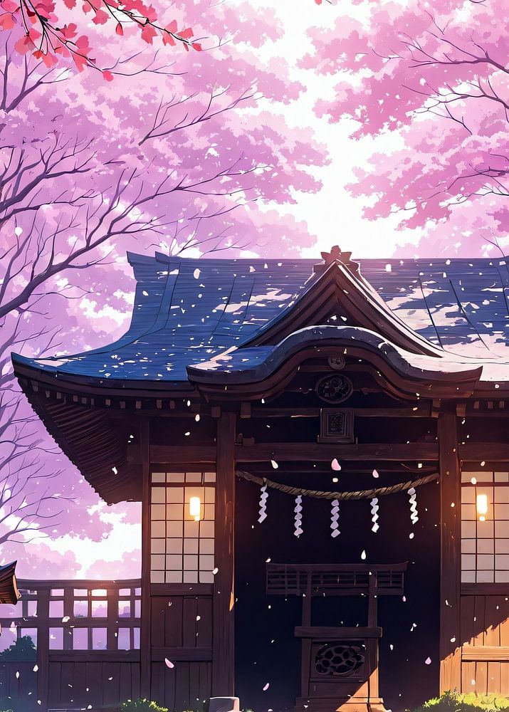 Nestled among blooming cherry blossoms, a shrine rests in quiet dignity as lanterns glow warmly at dusk. Petals drift like whispered prayers, and the air feels heavy with reverence. Sanctuary of Petals captures the eternal harmony of spring and spirit — a reminder that even in fleeting beauty lies timeless devotion.
